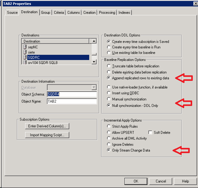 - To replicate change data only, specify Append replicated rows to existing data