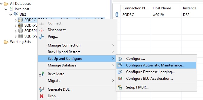 - Right-click on the database name and select Setup and Configure, then Configure Automatic Maintenance.